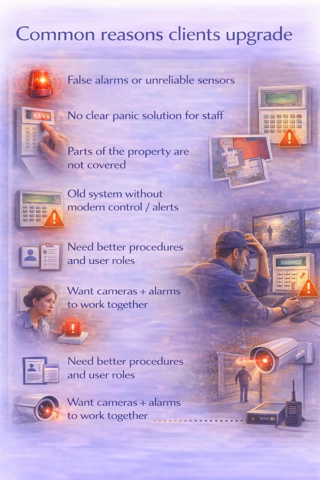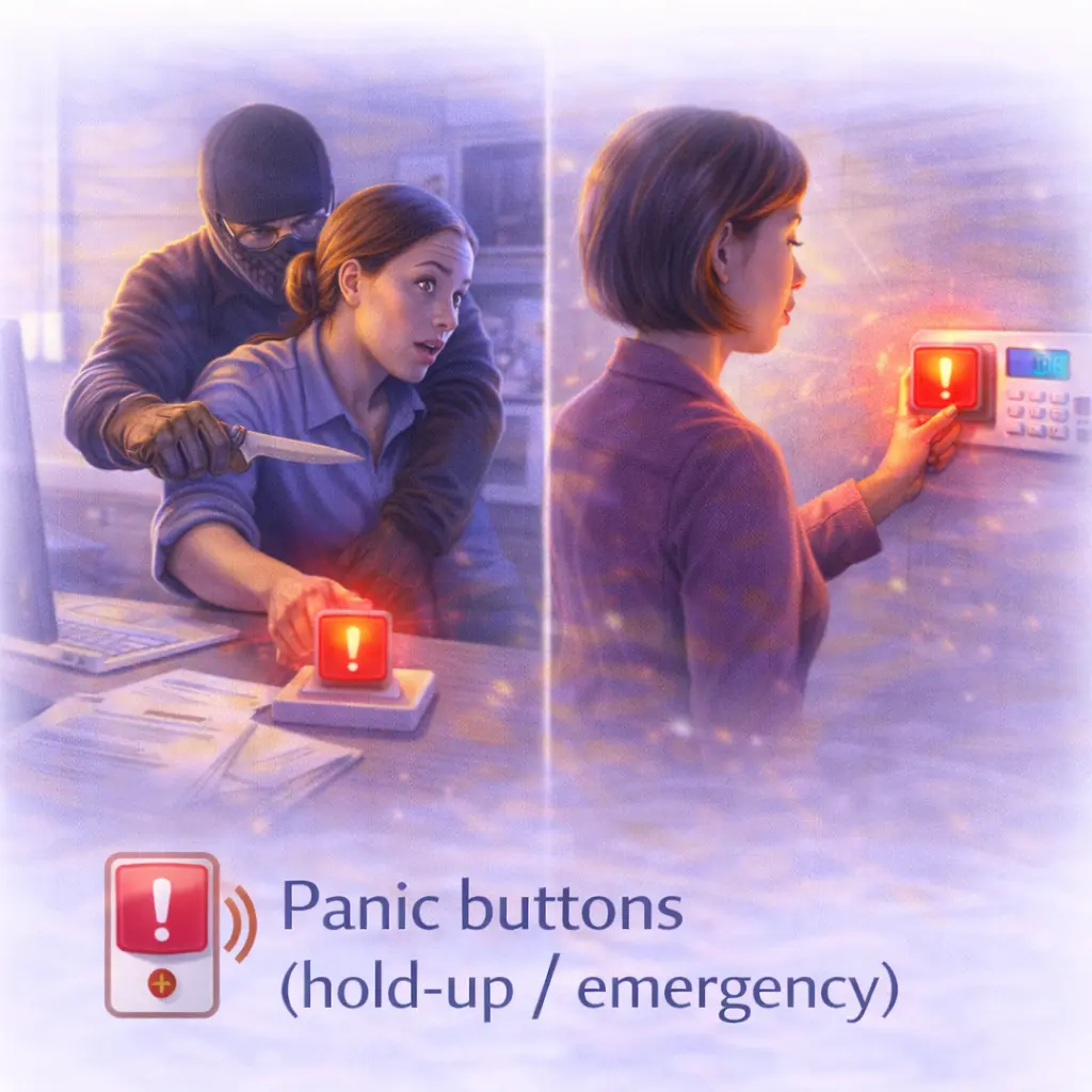 For businesses, a hold-up or panic situation needs different thinking: discreet triggers, clear procedures, and reliable alerting. We can design panic button solutions that are practical and easy for staff to use.