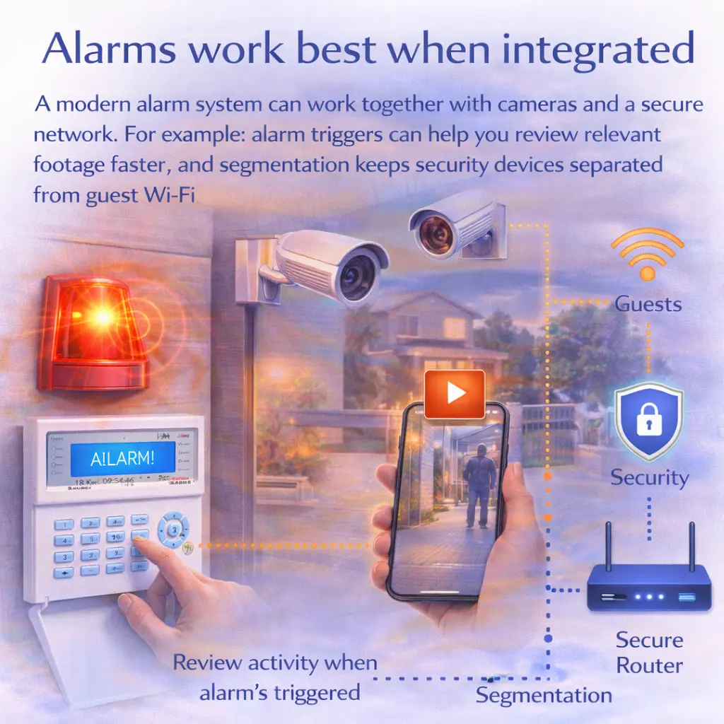An alarm only adds value when it detects the right events, reduces false alarms, and triggers a clear response. We design alarm systems around real behavior: entry routes, high-risk zones, panic situations, and simple daily use.