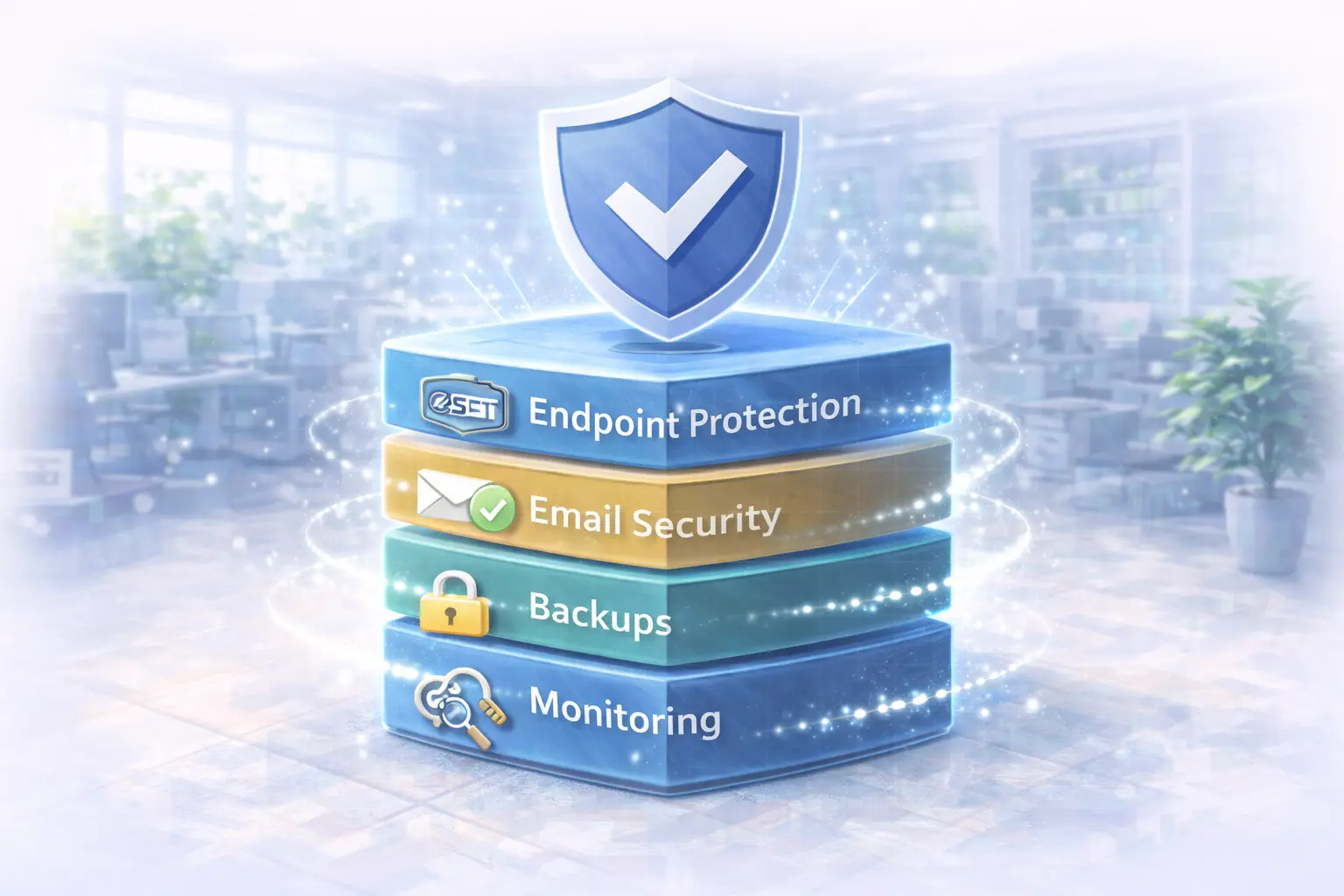We believe in distributing your budget across the whole environment — devices, email, backups, network, and access. Not one expensive tool while the rest stays weak. That’s how you get real peace of mind.